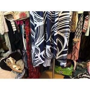 Chico's Maxi Dress Size 2 (L) Blue High-Lo Sleeveless Dress Knit Stretch Print
