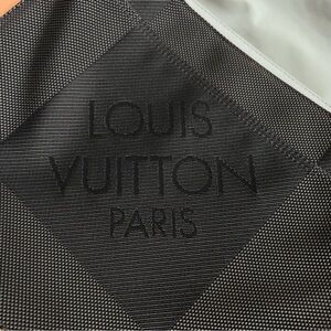 Now discontinued, the Louis Vuitton Terre Damier Geant Messenger Bag is a modern messenger that combines classic Louis Vuitton design cues with the latest in high tech materials. The first messenger style in Damier Geant, this sleek bag offers ample carrying capacity making it the perfect travel companion. The lightweight Damier Geant nylon construction offers easy carrying and durability. A rear zip pocket offer quick access to your belongings. This Messenger bag also comes with a removable padded divider, which makes toting your laptop and documents a breeze! Last known retail price is $1560.
