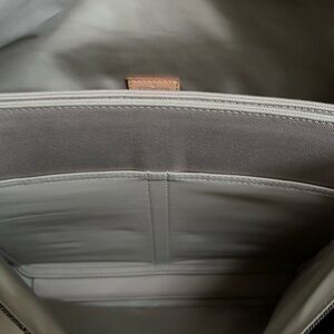 I used this bag for only a couple weeks and it has been stored in my closet since! Still has original box and dust bag as well. One of the best on the market right now considering its condition. BEAUTIFUL bag, excellent shape overall, only couple issues are very minor: mild wear on the bottom corners and bottom, and two small stains on the inside corners which aren't noticeable unless you're really looking for them, and very faint scratches in the computer compartment. Please please see all photos for condition and if you have any questions feel free to ask. It was barely worn, the canvas is gorgeous, and the interior compartments are very clean and stiff since they weren't even broken in and were barely used. The leather is still light colored and the metal buckles and other parts are very shiny with no scratches. LOVE this bag just don't have a use for it now that I work from home
