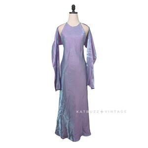 Vintage 90s Y2K Beaded Prom Dress Maxi Gown by Chelsea Nites - Size 8 - Purple Blue Duochome / Colorshift. **Matching scarf is included.