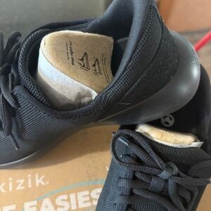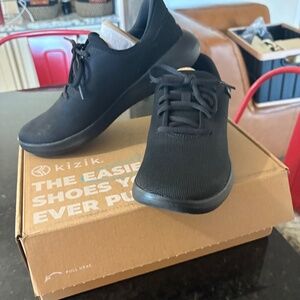 NEW Kizik Madrid Eco-Knit slip-on shoes in black, which feature hands-free technology allowing the wearer to step in and out of the shoes without using their hands. The shoes are designed as hands-free slip-on sneakers with a bendable heel, intended for comfort and convenience. They have a lace-up closure that you tie once to adjust the fit. The shoes are designed as hands-free slip-on sneakers with a bendable heel, intended for comfort and convenience. They have a lace-up closure that you tie once to adjust the fit. The shoes are designed as hands-free slip-on sneakers with a bendable heel, intended for comfort and convenience. They have a lace-up closure that you tie once to adjust the fit.