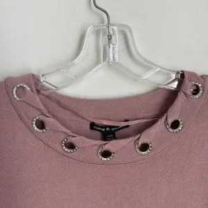 Cable & Gauge Mauve Long Sleeve Embellished Grommet Sweater Women's