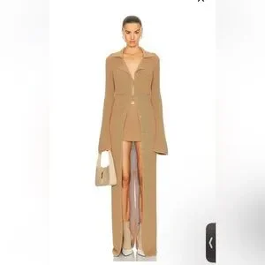 Chic long sleeve dress by Aya Muse. Features a stylish tan color. Ideal for modern elegance.