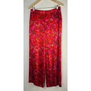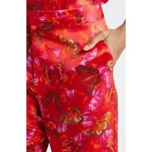 L'AGENCE Luvvy Butterfly Print Silk Straight Leg Trousers Women's Medium ? Pants