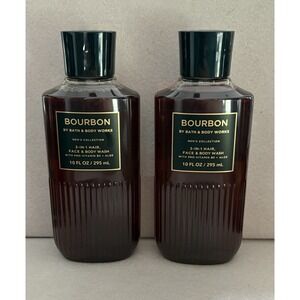 Bath & Body Works Bourbon Men's 3-IN-1 Hair Face Body Wash-TWO PACK Brand New