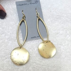 Elegant gold dangle earrings by Veronica & David. Perfect for adding a touch of sophistication to any outfit.