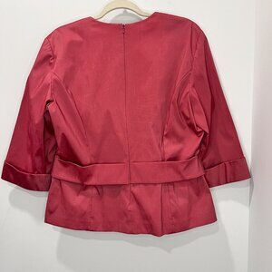 Alex Evenings Pink Jacket Cuffed 3/4 Sleeve Jeweled Brooch Front Closure Sz XL