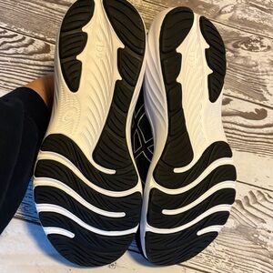 Sleek black sneakers with white detailing. Ideal for running and workouts.
