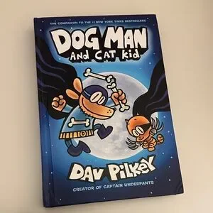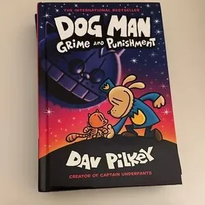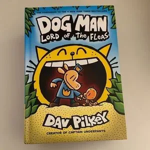 Set of four Dog Man books by Pilkey. Includes colorful covers in blue, red, orange, and black.
