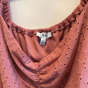 Chic mini dress with puff sleeves. Features a gathered neckline and ruffle hem. Size 2X, 96% Polyester, 4% Spandex/Lining: 100% Polyester. Great a condition, hardly worn.