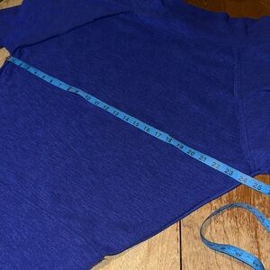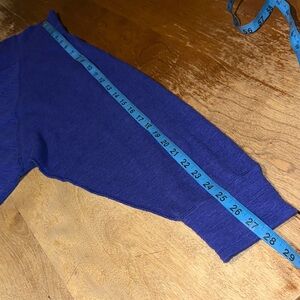 Stylish blue sweater with a wide neckline. Perfect for casual wear.
