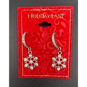 NWT Holiday Lane Silver Tone Clear Rhinestone Snowflake Dangle Pierced Earrings