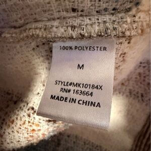 This ultra-soft plaid sherpa jacket blends cozy texture with classic shacket styling. Featuring warm cream, orange, brown, and blue plaid, corduroy trims along the collar, placket, hem, and pocket flaps, plus two side pockets for easy wear. Button-front closure and a relaxed medium fit make it perfect for fall layering or casual everyday outfits. Great condition with no holes or major flaws.