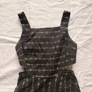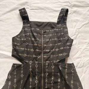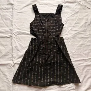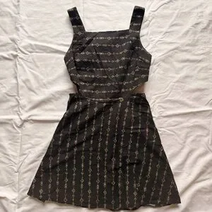 Black printed dress from Urban Outfitters. Features a flattering square neck, cutouts on the sides, and a nice slightly flared skirt. Worn once so it’s in perfect condition!