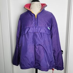 Bright Pink & Dark Purple REVERSIBLE Long Sleeve Pullover Windbreaker Ski Jacket with Purple Side Slash Pockets on the pink side and velcro Kangaroo Pouch Pocket on the purple side, by Perspective 11.