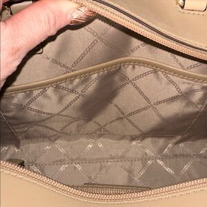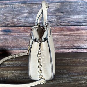 Chic and versatile Michael Kors satchel. Features elegant gold accents. Perfect for any occasion. Has removable strap!