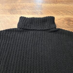 Abercrombie & Fitch Black Turtleneck Sweater Chunky Knit Slits Soft Oversized XS