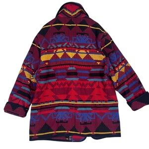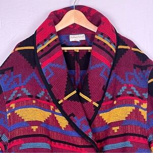 Vintage Wool Sweater Coat Aztec Southwestern Womens XL Woven Blanket Western
