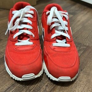 Stylish and comfortable, these Nike sneakers are perfect for active days. Featuring a vibrant red color, they offer both durability and style. good Preowned condition with some stains