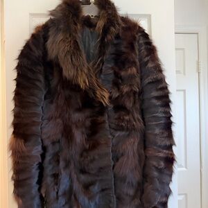 Elevate your style with this luxurious Dark Brown Real Mink fur coat with Real Fox .
