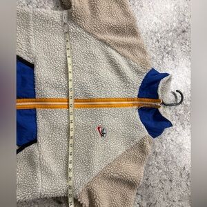 Cozy Nike jacket with vibrant blue and white design. Features bold orange zipper. Ideal for warmth and style.