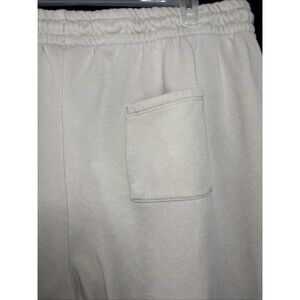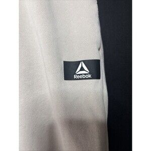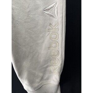 The product is a pair of NWOT Reebok joggers in size 3XL for men. These beige pants feature a white Reebok logo on the pockets and a drawstring closure for a comfortable and adjustable fit. The jogger style and logo theme add a trendy touch to the activewear, making them perfect for casual or athletic occasions.