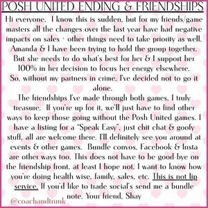 DUE TO POSH CHANGES POSH UNITED IS ENDING😞THANK YOU FOR FRIENDSHIP & SUPPORT💕
