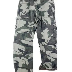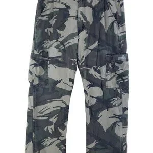 These camouflage cargo pants offer a relaxed fit and are crafted from a durable cotton blend. Designed with multiple pockets, they are functional for outdoor activities. (B1)