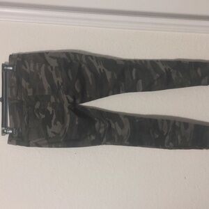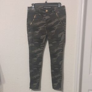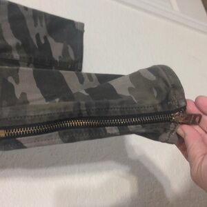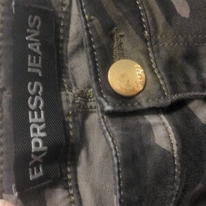 Stylish and comfortable camo skinny pants by Express. Perfect for a trendy, casual look. Zipper pockets on the front and zippers up the side of the legs make these jeans unique. Size 6 and is in excellent condition.