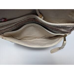 Vintage 80s Clutch Purse Beige Colorful Stripe Woven Bag