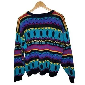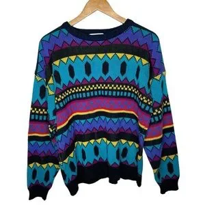 Vintage 90’s Chauvin Geometric Retro Turquoise Knit Sweater