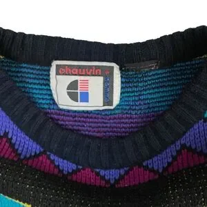 Vintage Chauvin Geometric Retro Turquoise Knit Sweater