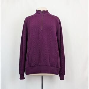 Orvis Pullover Top Purple 1/4 Zip Mock Neck Jacket Pockets Misses Size L