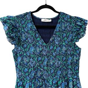 Vineyard Vines Navy Green Floral Smocked Midi Dress