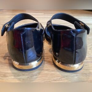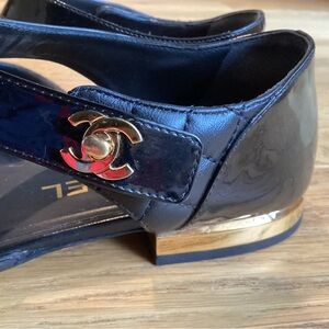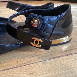 Chanel Black Patent leather turnlock gold CC flats Size US 7 EU 37