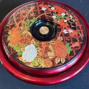 Enhance your table decor with this vibrant red and black Japanese lazy Susan! Perfect for adding a beautiful touch to any room.
