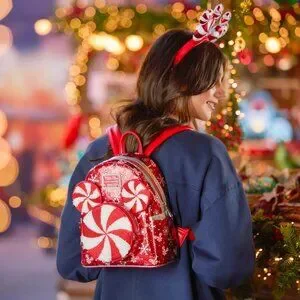 NWT Loungefly Disney Parks 2025 Christmas Peppermint Swirl Mini Backpack
