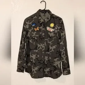 Forever 21 Camouflage Button-Up Shirt with Patches
