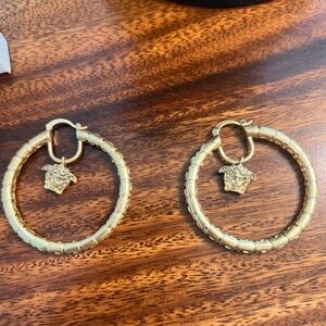 Gold Iconic Medusa Charm Hoop Earrings✨Fashion‼️Full Inclusion Comes W Box 🎁