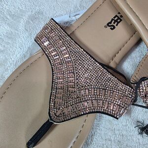 Muk Luks Luk*ees Pink Rose Gold Beaded Thong Sandal L 9/10 Beach Cruise Vacay