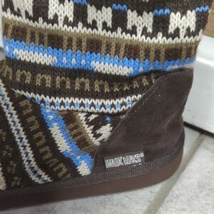 Muk Luks Brown and Blue Patterned Moccasins
