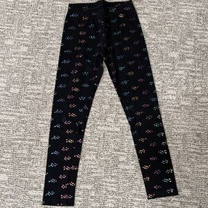 Vibrant leggings set by Cat & Jack. Includes floral, rainbow, space, and heart patterns. Perfect for playful days. All size medium (7/8). Black pair has a spot on the knee.