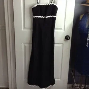 NWT Olivaceous/Cynthia Rowley Collaboration "S", Linen, Ric Rac, Spaghetti Straps; Boho Vibes, Unique Black Maxi with White Ric Rack. 100% Linen, Quality, Shoulders: 11", Pit-Pit: 14", Length: 37". NEW