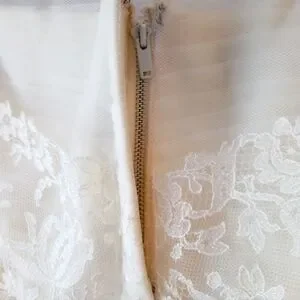 Concealed zipper in the back. Multiple layers of tulle to give volume. Rare and very special find.