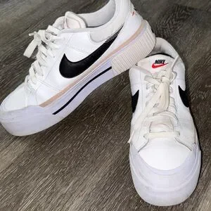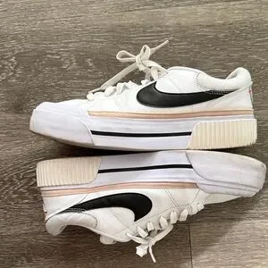 Classic Nike sneakers with a sleek design. White base with bold black swoosh. Perfect for everyday wear.