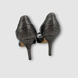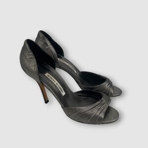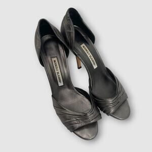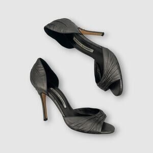 Manolo Blahnik Gunmetal Leather D’Orsay Peep Toe Heels Women’s EU 37.5