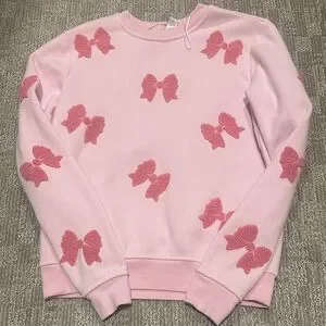 Charming pink sweatshirt with bow embellishments. Perfect for a cozy and stylish look.