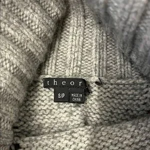Theory Light Gray Cable Knit Turtleneck Sweater