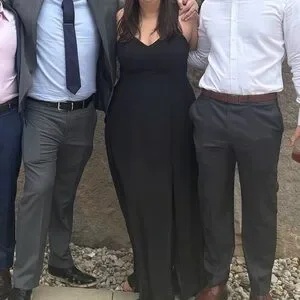 This stunning black bridesmaid gown is perfect for any formal occasion. Its sleek design and elegant slit add a touch of sophistication.