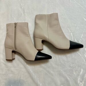 Seychelles No One Like You Off White or Taupe and Black Leather Ankle Boots - 10